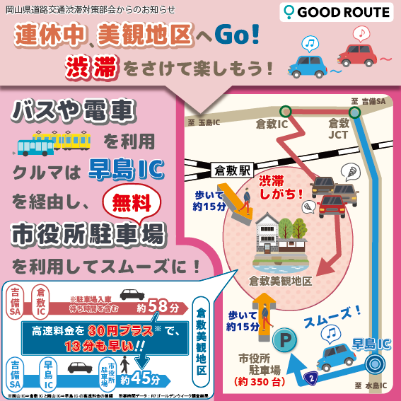 秘訣(2)車移動の場合、早島ICにて降車する「スイスイ移動」